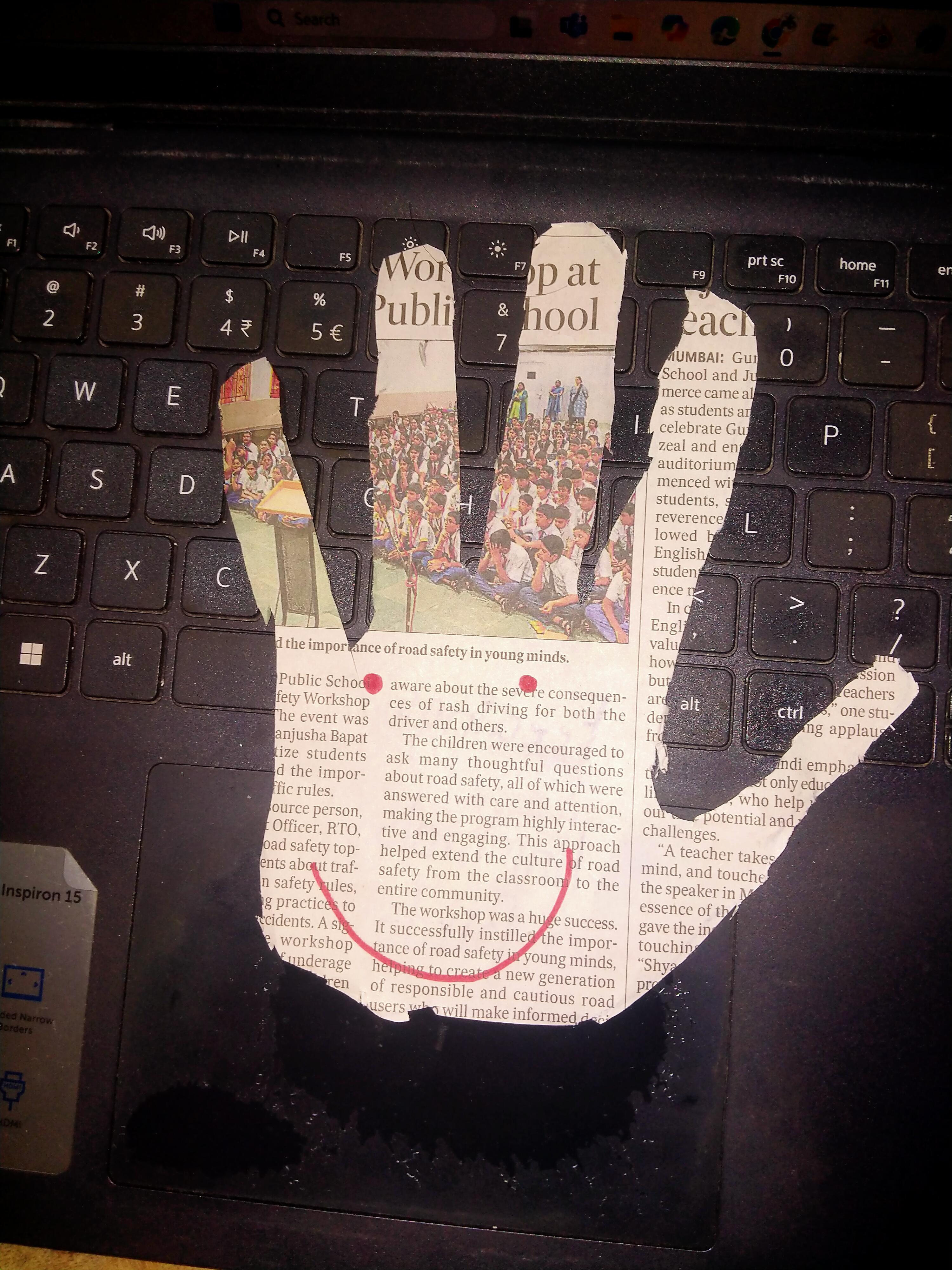 Making from newspaper outline of hand from PBHS