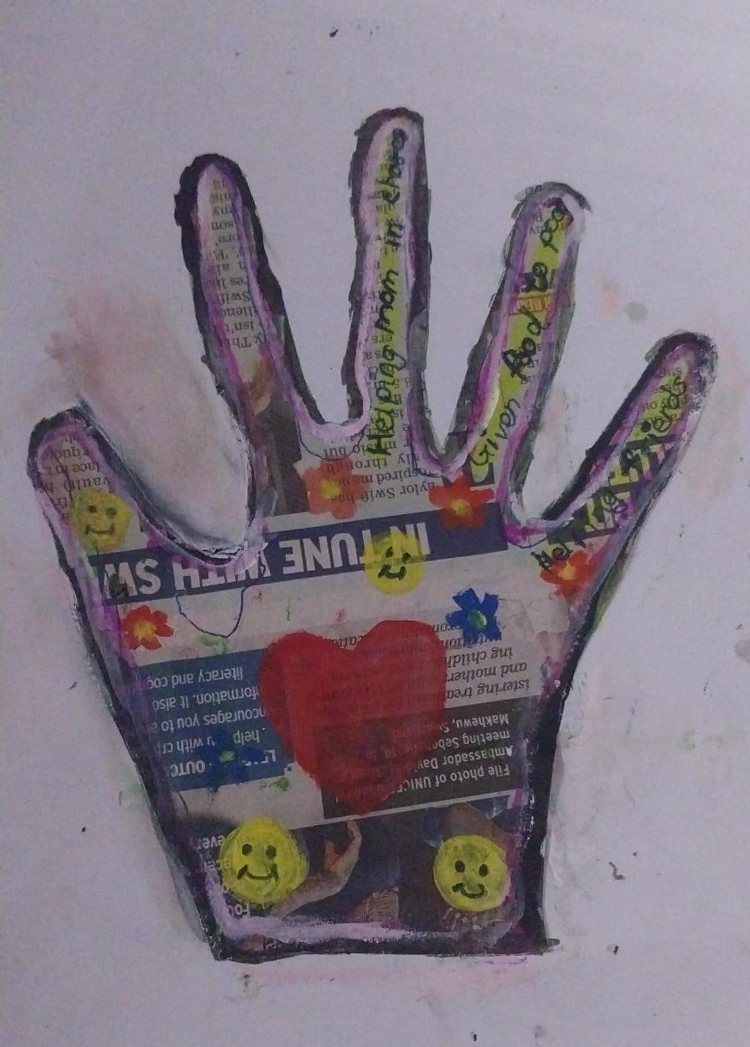 Newspaper cutting hand outline from PBHS